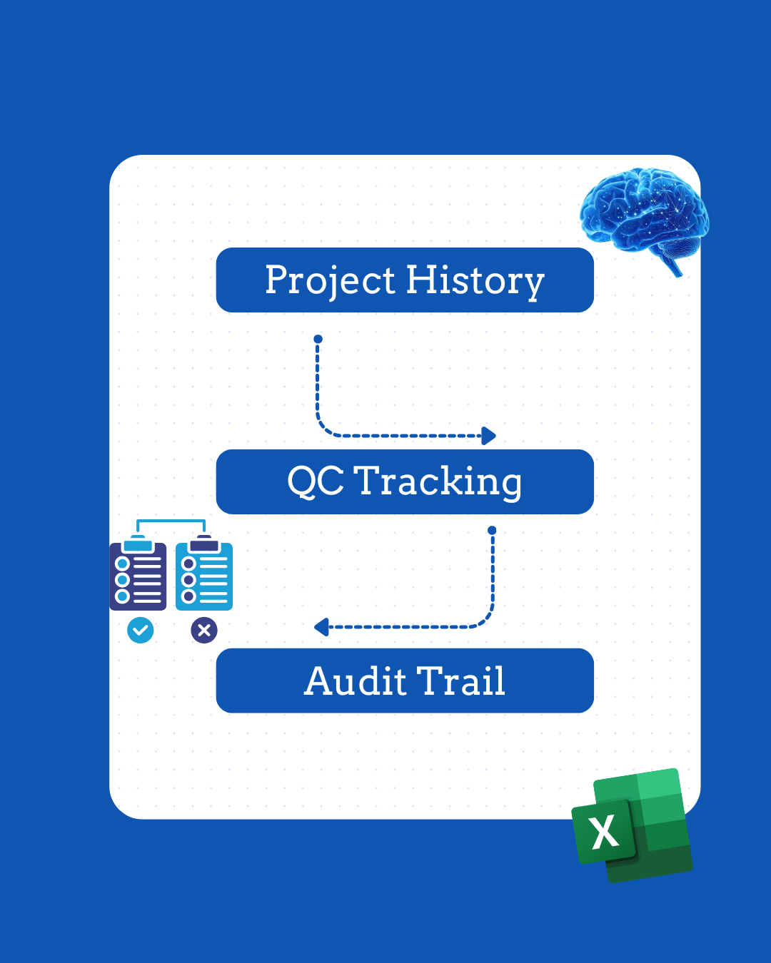Nokk retains the full history of every project — every QC result, revision, score, and change over time. Before/after comparisons are instant, recurring issues are visible, and your audit trail writes itself.
